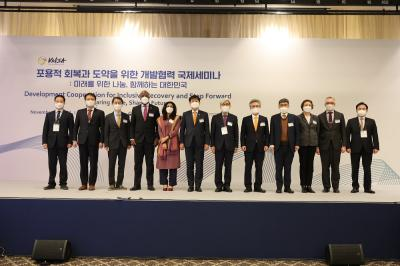 「개발협력의 날」맞아 포용적 회복과 도약을 위한 개발협력 국제세미나 개최대외경제정책연구원(KIEP, 원장 김흥종)은 11월 25일(목) 더케이 호텔 서울(유튜브 현장 생중계)에서 ‘포용적 회복과 도약을 위한 개발협력 국제세미나’를 개최하였다. 국무조정실과 경제·인문사회연구회가 주최하고 KIEP가 주관한 이번 세미나는 OECD DAC 가입 11주년을 기념하는 「개발협력의 날」을 맞이하여 중견 공여국으로서 한국의 개발협력 전략을 논의하기 위해 마련된 자리였다. 2015년 지속가능발전목표(SDGs)가 채택된 이후 개발협력이 더 포괄적이고 포용적인 발전에 역점을 두고 있는 시점에 한국의 개발경험으로부터 정책적 교훈을 얻고 국제개발협력의 역할을 재조명하고자 국내외 전문가들이 한자리에 모였다. 이날 행사에는 정해구 경제·인문사회연구회 이사장을 비롯해 구윤철 국무조정실장, 손혁상 한국국제협력단(KOICA) 이사장이 참석했다. 정해구 이사장은 개회사에서 “코로나19 위기 및 이에 대한 대응 과정에서 선진국과 개발도상국 사이의 격차를 고려하여, 포용적 회복과 도약의 정신 아래 향후 개발협력이 활발하게 이루어질 수 있는 방안이 논의되길 희망한다”고 밝혔다. 구윤철 국무조정실장은 환영사에서 한국의 ODA 규모를 2030년까지 두배로 확대하겠다는 정책목표를 밝히고, “지구촌 공동체 건설을 위해 협력과 연대의 정신을 바탕으로 국제사회의 노력에 동참하겠다”고 강조하였다. 기조세션에서는 조지 모레이라 다 실바(Jorge Moreira da Silva) OECD 개발협력국(DCD) 국장이 ‘지속가능한 미래를 위한 포용적 개발협력’이라는 주제로 기조연설을 진행했다. 1세션에서는 ‘국제개발협력의 역할과 한국의 경험’을 주제로 정성춘 KIEP 부원장이 사회를 맡은 가운데 라크네어 엘린 아르나도뗄(Ragnheiður Elín Árnadóttir) OECD 개발센터 소장이 ‘국제개발협력의 새로운 변화와 특징’을 주제로 발제했다. 이어 서중해 한국개발연구원(KDI) 경제정보센터 소장은 ‘해외 원조와 경제발전: 한국의 경험 및 교훈’을 주제로 발제했으며, 뭄타즈 자흐라 발로치(Mumtaz Zahra Baloch) 주한 파키스탄대사, 응웬 부 떵(Nguyen Vu Tung) 주한 베트남대사, 마마두 게이 파이(Mamadou Gueye Faye) 주한 세네갈대사가 토론에 참여했다. 2세션에서는 ‘지속가능한 미래와 개발협력 과제’를 주제로 윤제용 한국환경연구원(KEI) 원장이 사회를 맡고 제이슨 알포드(Jason Allford) 세계은행 서울사무소장이 ‘지속적인 혁신적 재원을 통한 지속가능한 개발’을 주제로 발표했다. 윤미경 국제개발협력위원회 위원은 ‘최근 한국의 ODA 정책과 도전 과제’를 주제로 발제했으며 류학석 GGGI 대외협력부 국장, 오윤 산자수렌(Oyun Sanjaasuren) GCF 대외협력국장, 앤 유에프너(Anne Juepner) UNDP 서울정책센터 소장이 토론에 참여했다.- 일 시: 2021년 11월 25일(목) 11:00 ~ 17:50- 장 소: 더케이 호텔 크리스탈볼룸- 주 최: 국무조정실, 경제·인문사회연구회- 주 관: 대외경제정책연구원- 문 의: 국제개발협력센터 전략평가팀 박차미 연구원(E-mail: chamipark@kiep.go.kr)* 세미나 관련기사 보러가기: YTN, 연합뉴스, 뉴시스, 매일경제, 한국경제, 이데일리작성자 장경혜 작성일 2021/11/29 조회수 3,955