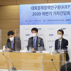 KIEP 2020 하반기 기자간담회 개최 및 2021년 세계경제 전망 발표대외경제정책연구원(KIEP)은 11월 12일(목) 정부세종청사 기획재정부 3층 브리핑실에서 기재부 출입기자들을 대상으로 ‘2020 하반기 기자간담회’를 열고 2021년 세계경제 전망을 발표했다. 정부포탈 e-브리핑을 통해서도 온라인 생중계된 이번 간담회는 KIEP 연구진들이 차년도 세계경제 성장률을 비롯해 미 신행정부 출범 및 코로나19 등 글로벌 주요 현안에 대해 브리핑하고 언론의 질의에 응답하는 자리였다. 김흥종 KIEP 원장은 개회사에서 2021년 세계경제는 5.0% 성장할 것으로 전망하며, 주요 선진국 경제가 올해 하반기 다소 회복세로 돌아서겠지만 코로나19 이전 성장경로로 복귀하기는 어려울 것이라고 분석했다. 또한 차년도 세계경제 키워드로 ‘예방’과 ‘재활’을, 불확실성 요인으로는 △백신 개발·보급 및 코로나19 재확산 △미중 갈등 장기화 △금융과 실물의 괴리 등을 꼽았다. 김 원장은 코로나19로 더욱 다양해진 대외변수에 선제적으로 대응해 나가기 위해 세계경제를 전망하는 일은 매우 중요하며, 이것이 국책연구기관으로서 KIEP의 역할이라고 밝혔다. 이어 전망 개관을 브리핑한 안성배 국제거시금융실장은 2020년 세계경제는 5.1% 역성장한 후, 2021년에 5.0% 성장하며 회복세를 보일 것이라고 예측했다. 2021년 성장률 전망치는 대부분 올해의 낮은 성장률에 따른 기저효과이며 성장동력이 좋아졌다고 보기는 힘들다고 설명했다. 안 실장은 2020년 글로벌 GDP는 2017년 수준에 미치지 못하고 내년에 경기가 회복하는 과정에서도 2018년 수준에 못 미칠 것이라고 부연했다. 주요 선진국의 경우 경기침체로부터 다소 회복하는 모습을 보일 것으로 내다봤다. 다만 미국은 코로나19 재확산의 영향이 내년 초까지 이어지며 2.8% 성장률을 기록할 것이라고 분석했다. 유로 지역의 경우 2021년 경기침체에서 일부 회복하며 3.7% 성장하고, 일본은 도쿄올림픽 개최와 세계경제 회복세 영향으로 2.0% 성장할 것으로 전망했다. 신흥국들도 회복조짐을 보일 것으로 전망됐는데, 중국의 경우 정부 차원의 경기부양책 시행으로 8.4%의 성장률을, 인도는 9.0%의 성장률을 기록할 것으로 예상했다. 아세안 5개국도 다양한 경기부양책이 효과를 발휘할 경우 5.5%의 성장률을 보일 것으로 전망했다. 이 외에도 KIEP는 최근 학계, 정부, 공공기관, 민간연구소, 기업 등의 경제 및 지역 전문가 57명을 대상으로 △세계경제 △코로나19 지속 △시급한 정책과제 △미국 대선 이후 세계경제 질서 △유가에 대해 실시한 ‘대외경제 전문가 설문조사’ 결과를 제시했다. 김흥종 원장을 비롯한 KIEP 연구진들은 이후 기자단과의 Q&A를 통해 미 바이든 행정부 출범에 따른 경제적 영향, 북한에 의한 지정학적 리스크, 미중 통상갈등 및 개술패권 경쟁 등에 관해 추가로 논의했다. 이번 기자간담회에는 KIEP 정성춘 부원장, 조충제 세계지역연구센터 소장, 김영귀 대외전략위원장/연구조정실장, 배찬권 무역통상실장, 김준동 선진경제실장, 이승신 중국경제실장, 이권형 신남방경제실장, 박정호 신북방경제실장 등 원내 전문가 및 20여 명의 기재부 출입기자들이 참석했다.- 행사명: 대외경제정책연구원 2020 하반기 기자간담회- 주제: 2021년 세계경제 전망- 일시: 2020년 11월 12일(목), 10:00~11:10- 장소: 정부세종청사 기획재정부 3층 제1공용 브리핑실- 주최: 대외경제정책연구원(KIEP)* ‘2021년 세계경제 전망’ 보고서 보러가기: KIEP 오늘의 세계경제* ‘2021년 세계경제 전망’ 영상보고서 보러가기: KIEP 유튜브* 관련기사 보러가기: 연합뉴스, 연합인포맥스, 뉴시스, 뉴스1, 한국경제, 한겨레, 아시아경제, 이데일리, 디지털타임스, The Korea Herald작성자 최고관리자 작성일 2020/11/12 조회수 4,460