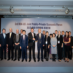 한국의 신남방정책과 미국의 인도·태평양 전략을 연계한 미래지향적 한미 협력방안 모색대외경제정책연구원(KIEP)은 외교부, 미 국무부와 공동으로 11월 7일(목) 서울 신라호텔에서 ‘제3차 한미 민관합동 경제포럼(3rd ROK-US Joint Public-Private Economic Forum)’을 개최하였다. KIEP는 우리나라의 신남방정책과 미국의 인도·태평양 전략을 연계한 실질적인 한미 경제 협력 연구를 수행해오고 있다. “한미 양국의 미래지향적 경제 협력을 위한 방안”이라는 주제로 진행된 이번 포럼에서는 두 나라의 민·관 전문가들이 모여 한미 경제 협력 현황을 점검하고 향후 협력 강화 분야를 모색했다. 개회식은 이태호 외교부 2차관의 개회사와 키이스 크라크(Keith Krach) 미 국무부 경제차관의 환영사 순으로 진행되었다. 이태호 차관은 신남방정책의 주요 성과로 이달 말 ‘한-아세안 특별 정상회의’와 ‘제1차 한-메콩 정상회의’를 소개하며, 이번 포럼을 통해 다양한 실질 협력 제고 제안이 나오기를 바란다고 밝혔다. 키이스 크라크 경제차관은 한미 경제 파트너십이 양자 동맹관계의 핵심 축이라며, 공동의 가치를 토대로 글로벌 경제안보 강화를 위한 지속적인 협력을 기대한다고 말했다. 이어 ▲한미경제관계 현황 ▲아세안 지역 한미 협력방안 ▲여성의 경제적 역량 강화 등 총 3개의 세션에서 발제 및 토론이 진행되었다. 제1세션에서는 한미 경제관계는 불확실한 글로벌 경제환경 속에서도 교역 규모가 확대되고 투자가 증대되고 있으며, 한미 고위급 경제협의회 등 경제협력을 위한 다양한 채널이 효율적으로 가동되고 있다는 평가가 나왔다. 서진교 KIEP 선임연구위원 등 토론자들은 기존의 전통 무역, 투자 영역에서의 협력을 토대로 디지털 경제, 환경, 여성 경제인 능력배양 등 새로운 분야의 협력을 확대해나가야 한다고 입을 모았다. 아울러 민관합동포럼과 같이 정부 간 협의체 외에 이해관계자들을 아우를 수 있는 분야별 협력 채널이 구축될 필요하다고 말했다. 제2세션에서는 한국의 신남방정책과 미국의 인도·태평양 전략 간 에너지, 인프라, 스마트 시티 등의 분야에서 연계 협력 구체화 필요성이 논의되었다. 문진영 KIEP 연구위원이 참여한 토론에서는 에너지, 환경, 디지털 분야에서 양국 간 협력사업 구체화를 위해 기존에 각자 추진 중인 프로젝트 현황을 공유하고 공동 타당성 조사를 실시하는 등 다양한 시도가 필요하다는 의견이 나왔다. 마지막 제3세션에서는 여성의 경제적 역량 강화를 위한 정책과 여성 기업가들 간 상업적 협력 지원 등의 구체적인 프로젝트 추진 논의가 오갔다. 토론자들은 한미 정부 간 대화를 토대로 기업 차원에서 여성 관련 이슈가 우선적으로 다뤄질 수 있도록 인식 제고 노력을 지속하고, 다자회의체에서 최적 관행을 공유하거나 가이드라인을 채택하기 위한 양국의 협의도 필요하다고 언급했다. 정철 KIEP 부원장은 폐회사를 통해 한미 간 동맹은 안보의 목적에서 출발해 이제는 밀접한 경제적 동반자 관계로 발전했다고 말했다. 양국의 경제 교류도 상품, 서비스, 투자 등 모든 분야에서 활발히 진행되고 있으며, 금번 포럼에서 나온 제언들이 더욱 미래지향적이고 호혜적인 한미 관계의 밑거름이 되기를 희망한다고 밝혔다. 아울러 최근 글로벌 경기둔화 전망과 함께 신(新)시장으로 인도와 아세안 지역이 부상하고 있는 만큼, 한국의 신남방정책과 미국의 인도·태평양 전략이 상호 보완하며 시너지 효과를 낼 수 있을 것이라고 강조했다.- 행사명: 제3차 한미 민관합동 경제포럼- 주제: 한미 양국의 미래지향적 경제 협력을 위한 방안- 일시: 2019년 11월 7일(목), 9:00~15:00- 장소: 서울 신라호텔 영빈관 루비홀- 주최: 외교부, 미 국무부, 대외경제정책연구원(KIEP)- 문의: 선진경제실 미주유럽팀 임지운 전문연구원(044-414-1273)* 세미나 관련기사 보러가기: 연합뉴스, 뉴시스, 뉴스1, 중앙일보, 문화일보작성자 최고관리자 작성일 2019/11/07 조회수 4,477