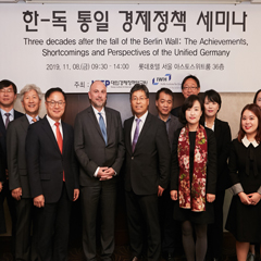 독일 통일이 한반도에 주는 정책적 시사점 분석대외경제정책연구원(KIEP)은 기획재정부, 독일 할레경제정책연구소(IWH-Halle)와 함께 11월 8일(금) 서울 소공동 롯데호텔에서 ‘제6차 한·독 통일 경제정책 세미나’를 개최하였다. 2019년은 베를린 장변이 무너진 지 30주년 되는 해로, 이번 세미나에는 국내외 학계와 연구기관의 전문가들이 참여해 통일 이후 동서독 경제 수렴화, 동독 지역의 인프라 구축 등에 대해 논의하고, 독일의 통일 경험이 한반도에 주는 시사점을 분석했다. 정형곤 KIEP 선임연구위원의 개회사와 유형철 기획재정부 통상현안대책반장의 인사말씀으로 세미나가 시작되었다. 첫 번째 세션에서 IWH-Halle의 Reint Gropp 소장은 통일 후 동서독 경제의 수렴화와 독일정부의 동독지역 지원정책에 관한 연구결과를 발표했다. Gropp 소장은 동서독의 경제 수렴화는 초창기인 1991년에서 1997년 사이에 높게 나타났으며, 1997년 이후부터 그 속도가 점점 느려졌다고 밝혔다. 그러나 최근에도 지역 간 격차로 인한 경제, 인구, 사회적 문제가 발생하고 있다고 지적했다. 정형곤 KIEP 선임연구위원은 “동서독 연방주 경제 수렴화와 성장요인 분석”을 주제로 최근까지 동서독 경제의 수렴화 과정과 수렴의 침체 원인을 분석했다. 정 선임연구위원은 동서독 경제 수렴화의 침체 요인으로 △혁신과 혁신 주체 부족 △동독 연방정부의 상대적 재정능력 부족 △1:1 화폐 통합 부작용과 잘못된 보조금 정책 △혁신을 위한 대기업 부족 △수출기업 부족을 강조했다. 이어 이상준 국토연구원 선임연구위원은 “동독지역의 인프라 구축과 남북한 시사점”을 주제로 통일 전 인프라 분야에서 동서독의 교류 협력 사례와 통일 후 동독지역 인프라 개발 사례를 통해 한반도에 주는 시사점을 제시했다. 이 선임연구위원은 1972년 동서독은 교통조약을 맺고 분단 상태에서 도로, 항공로 개보수 방안에 합의해 이를 시작으로 다양한 협력 사업을 전개했다고 강조했다. 두 번째 세션에서는 전문가들이 토론자로 참석하여 다양한 질의를 통해 심도 있는 논의를 진행했다. 특히 독일정부의 동독지원 보조금 정책과 동독 인프라 구축 정책 등 한반도에 시사점을 주는 정책 사례에 대한 논의가 활발했다. 이번 세미나는 KIEP와 IWH–Halle가 금년도 연구주제에 대한 최종 결과를 발표 및 논의하는 자리였다. 이날 공유된 연구결과물은 향후 남북 교류와 협력, 통일 이후 한반도 경제정책을 준비하고 수립하는 데 활용될 예정이다.- 행사명: 제6차 한·독 통일 경제정책 세미나- 주제: Three decades after the fall of the Berlin Wall: The Achievements, Shortcomings, and Perspectives of the Unified Germany- 일시: 2019년 11월 8일(금), 9:30~14:00- 장소: 서울 소공동 롯데호텔 아스토스위트룸(36층)- 주최 및 주관: 대외경제정책연구원(KIEP), 독일 할레경제정책연구소(IWH-Halle)- 후원: 기획재정부- 문의: 선진경제실 미주유럽팀 임지운 전문연구원(jwrim@kiep.go.kr)작성자 최고관리자 작성일 2019/11/08 조회수 3,777
