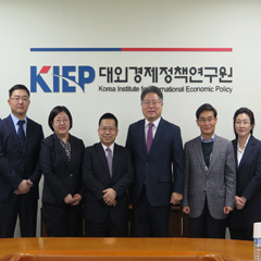 중국국제문제연구원(CIIS) 방원 및 원내 연구진 면담롼종저(阮宗泽) 상무부원장을 단장으로 하는 중국국제문제연구원(CIIS) 일행이 11월 12일(화) 대외경제정책연구원(KIEP)을 방문하여 이재영 원장을 예방하고, 원내 연구진들과 면담을 가졌다. CIIS는 중국 외교부 산하의 싱크탱크로 연구원 산하에 국제전략연구소, 세계경제와 발전연구소, 미국연구소, 아태연구소, 유럽연구소 등이 있는 중국의 대표적인 연구기관이다. 롼종저 일행은 이재영 KIEP 원장을 예방한 자리에서 경제 분야에서 한국의 대표 싱크탱크인 KIEP와 교류하기를 고대한 만큼, 오늘을 계기로 양 기관이 교류를 확대해나가길 바란다고 밝혔다. 이에 이재영 원장도 동의하며, 양 기관의 빈번한 교류를 통해 두 나라간 경제 교류와 협력이 강화되어 종국에는 한중 관계 발전으로 이어지길 희망한다고 화답했다. 한편, 롼종저 일행은 KIEP 세계지역연구센터 중국경제실 연구진들과의 면담 자리에서 한중 경제교류와 협력방안, 미중 무역마찰, 중국경제 전망 등에 대한 의견을 나눴다. 특히 최근 타결된 역내포괄적경제동반자협정(RCEP)의 의의 및 중국의 일대일로와 한국의 신북방·신남방정책의 효과적인 연계방안 등에 대한 다양한 논의를 진행했다. 롼종저 상무부원장은 이날 KIEP 연구진들과의 교류가 매우 유익했다고 밝히며, 중국과 한국 사이에 협력의 여지가 크기 때문에 앞으로 양 기관이 더욱 긴밀하게 교류해나가자고 제안했다. 면담에는 중국 측에서 롼종저 상무부원장을 비롯하여 왕루이빈 세계경제와 발전연구소 부소장, 션야메이 미국연구소 부소장, 리쉬동 중국 외교부 국제경제국 2등 서기관이 참석했다. KIEP에서는 양평섭 세계지역연구센터 소장, 이승신 중국경제실장, 중국권역별성별연구팀의 허재철 부연구위원, 최원석 부연구위원이 참석했다.- 행사명: 중국국제문제연구원(CIIS) 일행 방원 및 면담- 일시: 2019년 11월 12일(화), 11:00~13:00- 장소: 세종시 국책연구단지 대외경제정책연구원(KIEP)- 담당자: 중국경제실 중국권역별성별연구팀 허재철 부연구위원(jcheo@kiep.go.kr)작성자 최고관리자 작성일 2019/11/12 조회수 2,946