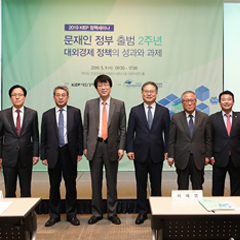 ‘문재인 정부 출범 2주년 대외경제 정책의 성과와 과제’ 세미나 개최대외경제정책연구원(KIEP)은 5월 9일(목) 서울 여의도 전경련회관 컨퍼런스센터에서 “문재인 정부 출범 2주년 대외경제 정책의 성과와 과제”를 주제로 세미나를 개최하였다. 문재인 정부 출범 2주년을 맞아 진행된 본 세미나는 한반도와 동북아의 새로운 정세 변화 속에서 동북아플러스책임공동체, 한반도 신경제구상, 통상 분야의 성과와 과제, 향후 추진전략을 종합적으로 점검하고자 마련되었다. 문재인 정부 3년 차를 시작하는 시점에서 국내 핵심 전문가들이 한자리에 모여 현 정부의 대외정책 성과를 국민들과 함께 공유하고, 앞으로 나아갈 방향을 모색했다는 점에서 의미 있는 행사였다. 이재영 KIEP 원장은 개회사를 통해 글로벌 보호무역주의 강화, 미·중 패권 경쟁, 북·미 간 비핵화 협상의 난항 속에서도 우리나라가 지속적으로 동아시아 평화와 번영을 도모해나가야 한다고 강조했다. 이를 위해 남북 관계 개선 및 주변국들과의 다자협력 강화가 필요하며, 특히 북방 및 남방 지역 국가들과의 협력 확대가 그 어느 때보다 중요하다고 밝혔다. 그간 협력국들과의 교류를 통해 미래 공동번영의 비전을 공유했다면, 이제는 상호이해를 바탕으로 구체적인 협력방안을 수립하여 내실있게 추진해나가야 한다고 역설했다. 이어 축사를 진행한 권구훈 북방경제협력위원회 위원장은 세계질서의 균열, 국제무역의 침체, 기술발전의 가속화, 한반도의 변화 등 대내외 구조적 변화에 선제적으로 대응하는 동시에 협력의 기회를 극대화해나갈 수 있도록 신북방정책의 추진이 필요하다고 강조했다. 이를 위해 우리나라가 주도적으로 한반도 신경제구상과 연계한 신북방정책을 속도감 있게 추진해나가야 한다고 밝혔다. 주형철 신남방정책특별위원회 위원장은 신남방 지역이 전통적인 성장 경로를 뛰어넘어 디지털 경제로 도약하고 있다는 데 주목하면서, 전통 주력 제조업의 혁신과 신산업의 발전이 균형있게 이루어지도록 신남방 지역과의 협력 범위를 더욱 넓혀가야 한다고 강조했다. 기조세션(라운드테이블)에서는 문정인 대통령외교안보특보가 사회를 맡고 정세현 한반도평화포럼 이사장(전 통일부 장관)이 ‘신한반도체제와 평화 경제’를 주제로 발제했다. 정세현 이사장은 신한반도체제 구축과 평화경제 달성을 위해서는 국내뿐만 아니라 국제적인 차원에서의 협력과 공조가 필요하다고 역설했다. 패널간 자유토론을 통해서도 심도 깊은 논의가 이루어졌다. 박정 국회의원(더불어민주당 한반도경제통일교류특별위원회 간사), 백준기 통일교육원 원장, 양문수 북한대학원대학교 부총장, 이정철 숭실대학교 교수, 최장호 KIEP 통일국제협력팀장이 패널로 본 세션에 참여했다. 오후에는 동북아플러스책임공동체 구성의 핵심인 신남방정책과 신북방정책, 그리고 통상정책에 대한 개별세션이 진행되었다. 1세션에서는 천영길 신남방정책특별위원회 경제산업협력관이 3P(People, Peace, Prosperity)에 입각한 신남방정책 추진경과와 성과를 설명하며, 우수인재 및 기술교류 확대, 제도적 기반 확충, 상생협력의 플랫폼 구축 등 2019년 중점협력사업을 소개했다. 2세션에서는 조창상 북방경제협력위 지원단 부단장이 평화와 번영의 북방경제공동체 비전을 바탕으로 그간 북방위에서 추진한 주요 과제의 성과를 공유했다. 구체적으로 소다자협력 활성화, 통합네트워크 구축, 산업협력 고도화, 인적 및 문화 교류 확대라는 4대 목표하에 16대 중점과제 추진방안을 발표했다. 마지막 3세션에서는 김승호 산업통상자원부 신통상질서전략실장이 국제적·지역적 관점에서 다자체제의 회복 기여, 신통상 이슈 대비, 중국과의 경제 및 통상관계 고도화 등의 통상정책 과제를 제시했다. 내부 정책과제로는 국제 송무 능력 제고, 통상과 대외경제 업무간 연계가 필요하다고 강조했다. 각 세션의 발표 이후에는 패널 토론을 통해 향후 추진전략을 종합적으로 점검했다. 이번 세미나에는 이충렬 고려대학교 교수, 김찬완 한국외국어대학교 인도연구소 소장, 이재현 아산정책연구원 선임연구위원, 홍석준 목포대학교 교수, 김성인 한·중앙아협력포럼 사무국장, 박상남 한신대학교 교수, 조봉현 IBK 경제연구소 부소장, 강인수 국제통상학회 회장, 김경만 중소기업중앙회 경제정책본부장, 안덕근 서울대학교 교수, 송영관 한국개발연구원 연구위원 및 KIEP 연구진 등 국내 유수의 전문가들과 정부기관, 주한 외국공관, 기업, 언론, 학계 등에서 참석해 뜨거운 관심을 보였다. - 주제: 문재인 정부 출범 2주년 대외경제 정책의 성과와 과제- 일시: 2019년 5월 9일(목), 9:30~17:00- 장소: 서울 여의도 전경련회관 컨퍼런스센터 3층 다이아몬드홀- 주최 및 주관: 대외경제정책연구원(KIEP)- 후원: 북방경제협력위원회, 신남방정책특별위원회- 문의: 신남방경제실 개발협력팀 현채원 연구원(044-414-1217)작성자 최고관리자 작성일 2019/05/09 조회수 2,284